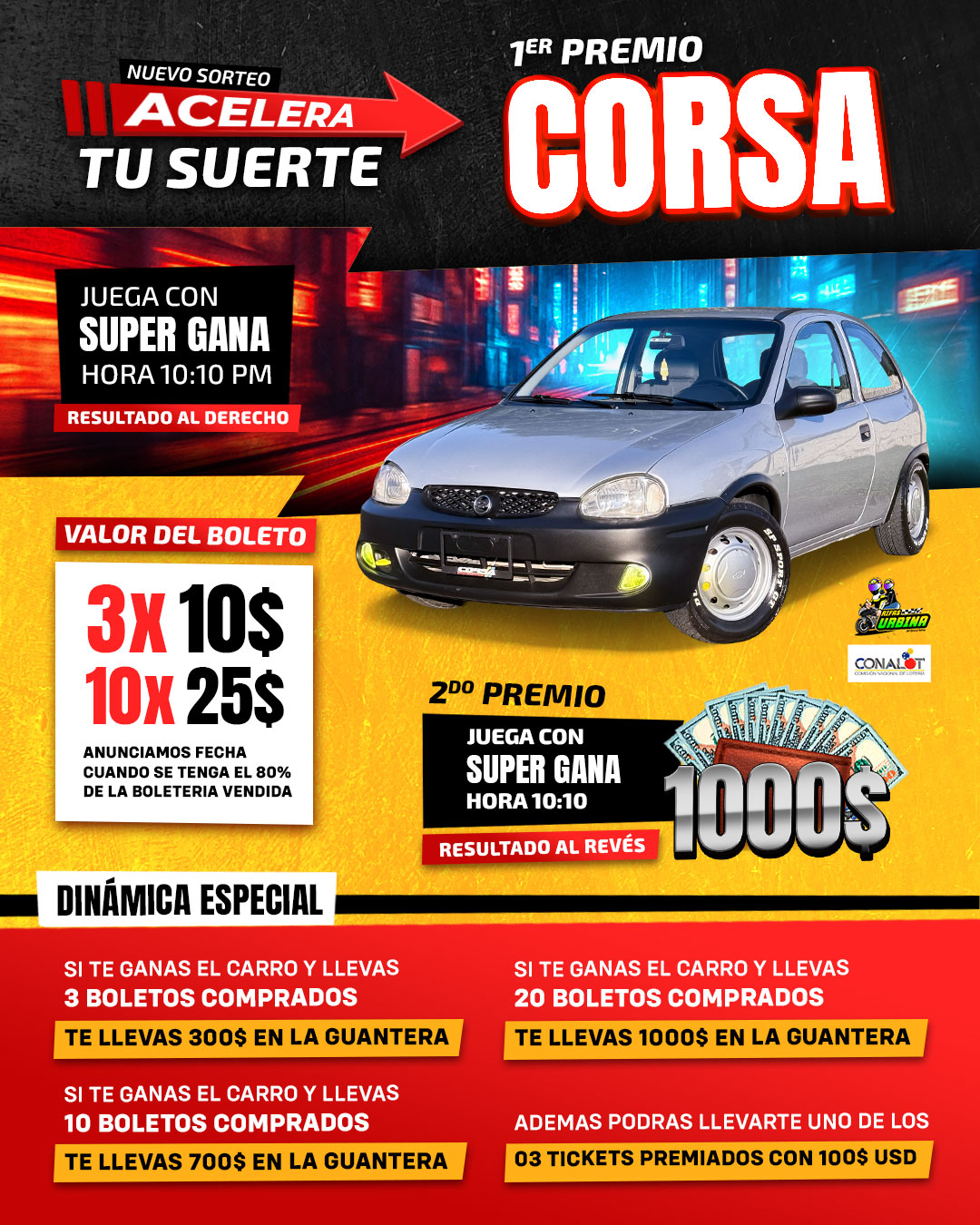 PRIMER PREMIO CORSA, SEGUNDO PREMIO 1000$